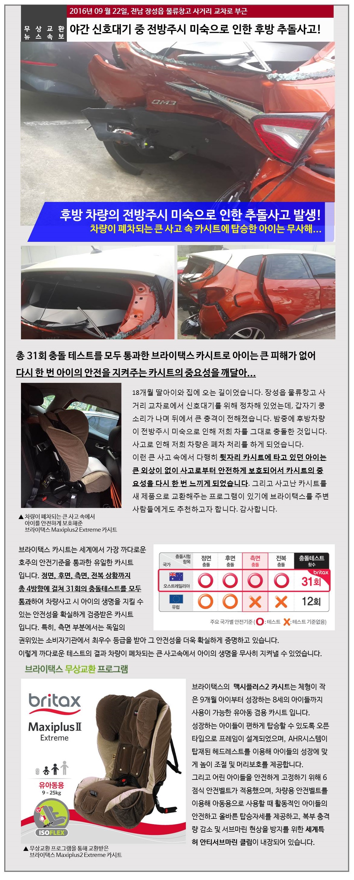 2016년 09월 22일, 전남 장성읍 물류창고 사거리 교차로 부근, 기**님