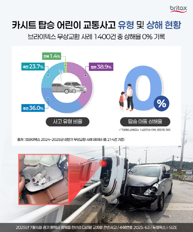 브라이텍스는 국내 교통사고를 기반으로 집계된 무상교환 사례가 현재까지 총 1448건에 이르며, 이 중 전손·폐차 등 중대 사고 사례에서도 아동 상해율이 0%를 기록했다고 밝혔다.