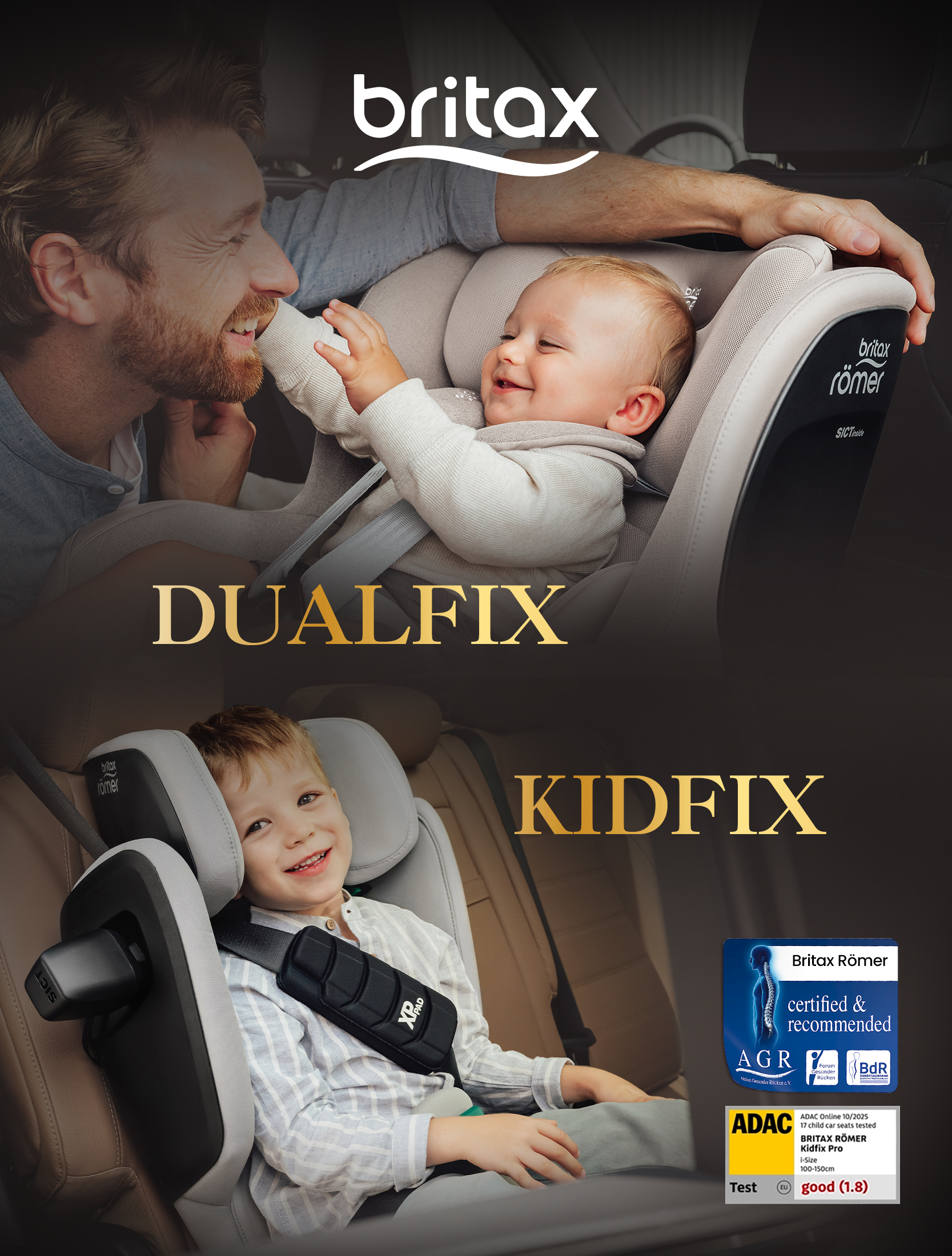 신생아의 경우 후방장착 각도와 차량과의 밀착 설치가 중요하다. 대표 제품 ‘듀얼픽스 PRO’는 신생아에게 최적화된 안전 각도인 골든앵글을 중심으로 설계돼 안정적인 척추 지지와 탑승 자세를 돕는다. 주니어 시기에는 안전벨트 위치가 핵심으로, ‘키드픽스 PRO’는 복부 충격을 줄이는 세계특허 기술 시큐어가드와 충격 완화 패드 적용으로 안전성을 강화했다.